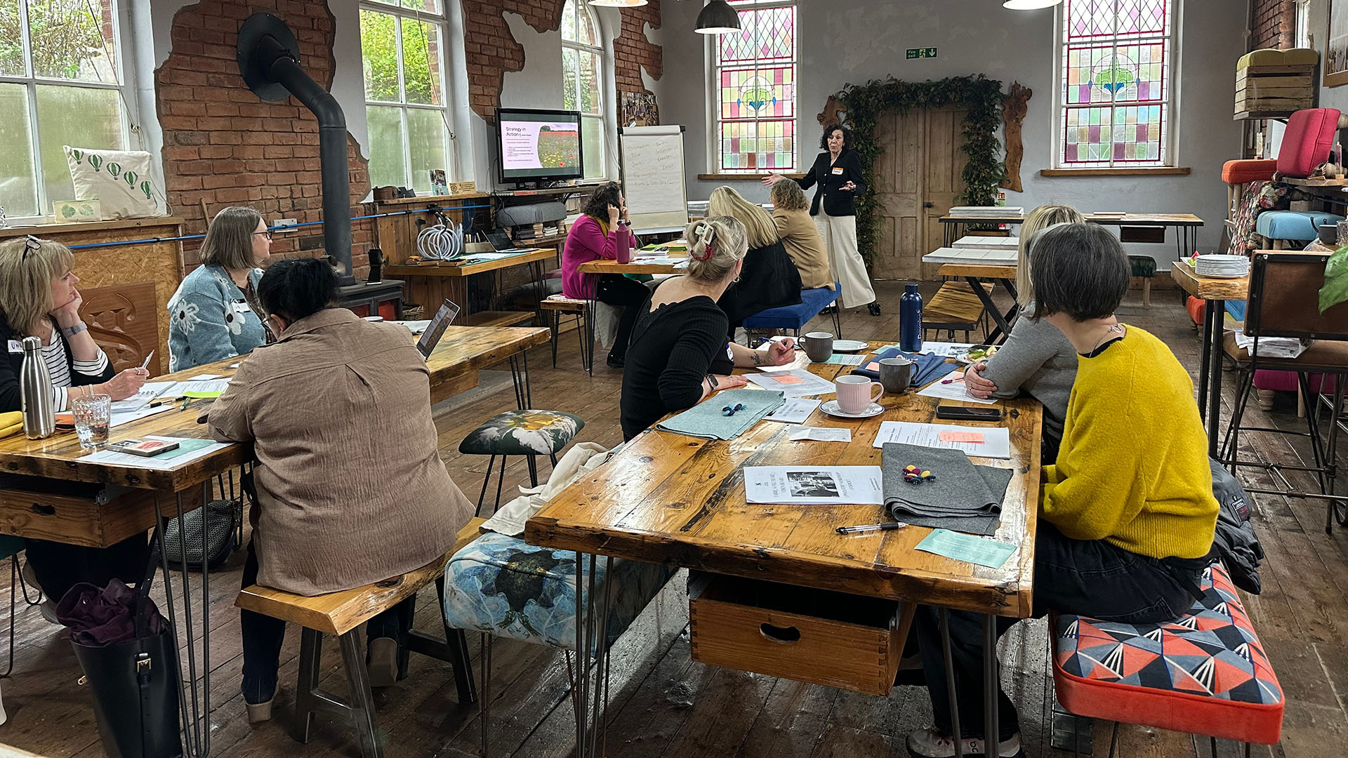 Set within a beautiful converted chapel in Scholar Green, our space is available for facilitators, creative practitioners, teams and organisers looking for somewhere different from a traditional meeting room. The chapel works best for small groups who value conversation, focus and a welcoming environment.