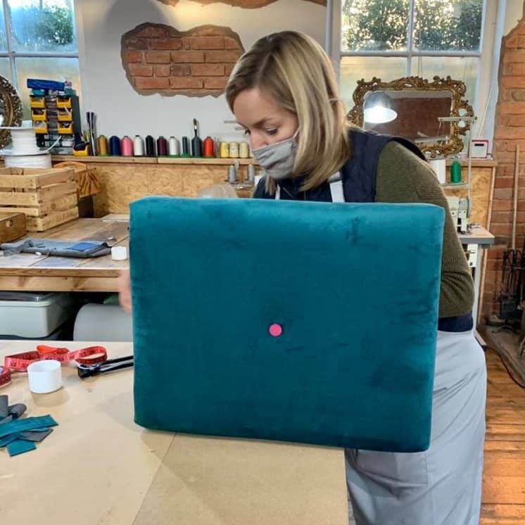 This is exactly what Pauline did. She came along to the workshop because she wanted to create a new footstool and storage box for her conservatory. The client chose some beautiful blue checked wool fabric ahead of the workshop to co-ordinate with her interior scheme. Thus, she left us some lovely feedback “I loved being able to create something bespoke and useful. It was lovely to share the experience with Emma, Ian and the other attendees”.